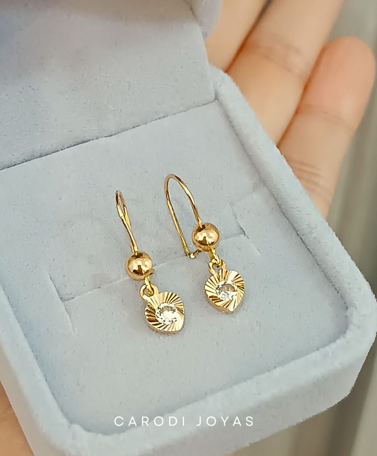 Aretes colgantes de Oro 18k Corazón piedra blanca